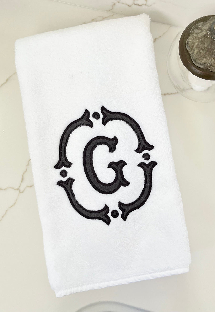 100% zero twist cotton fingertip towel from Matouk to match the hand and fingertip towels shown in separate listings. Measures 30x60. Luxuriously soft and super absorbent. Adding an embroidered or appliqué monogram will be a chic addition to a bathroom. Priced per one (1) towel.